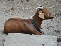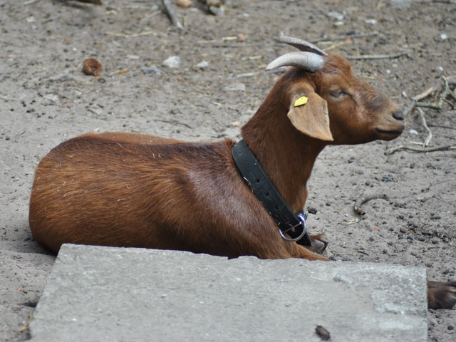 | In Mönchwinkel angekommen, trifft man gleich rechts auf ein Grundstück, auf dem sich Ziegen verschiedener Rassen wohlfühlen. Auf einem Schild am Zaun erfährt man, dass hier unter anderem die Thüringer Waldziege „Dora“, die Burenziege „Dora“ sowie „Carlotta“ (Anglo-Nubier) und „Lilly“ (Kalahari) wohnen. Manche sollen Milch, andere Fleisch liefern.
