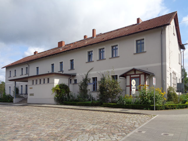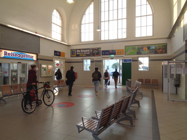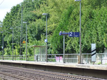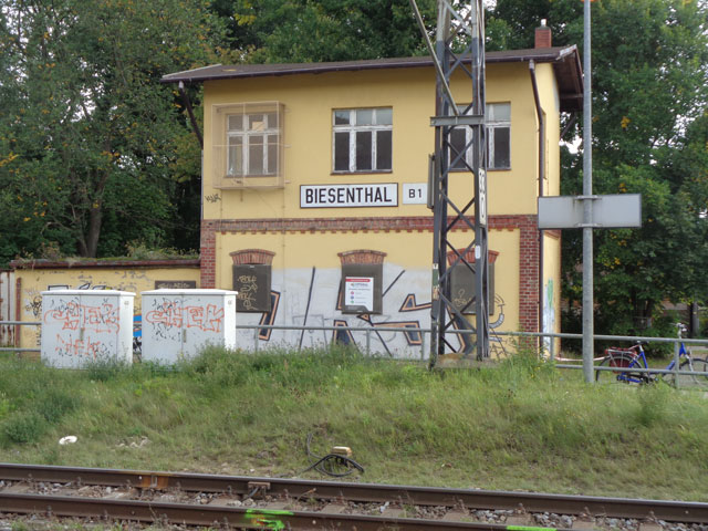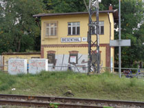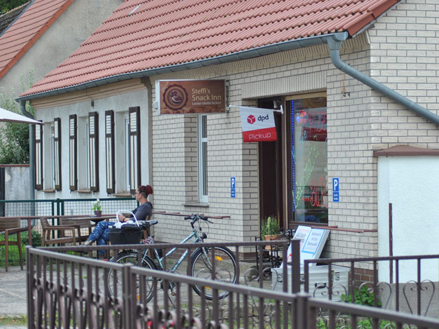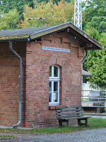 | Am Bahnhof Biesenthal hält nur stündlich ein Zug in jeder Richtung. Da reicht ein Automat für den Fahrkartenverkauf. | ![]() |