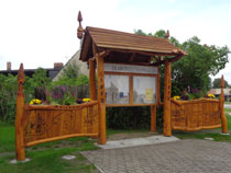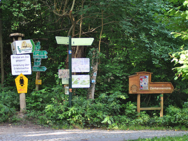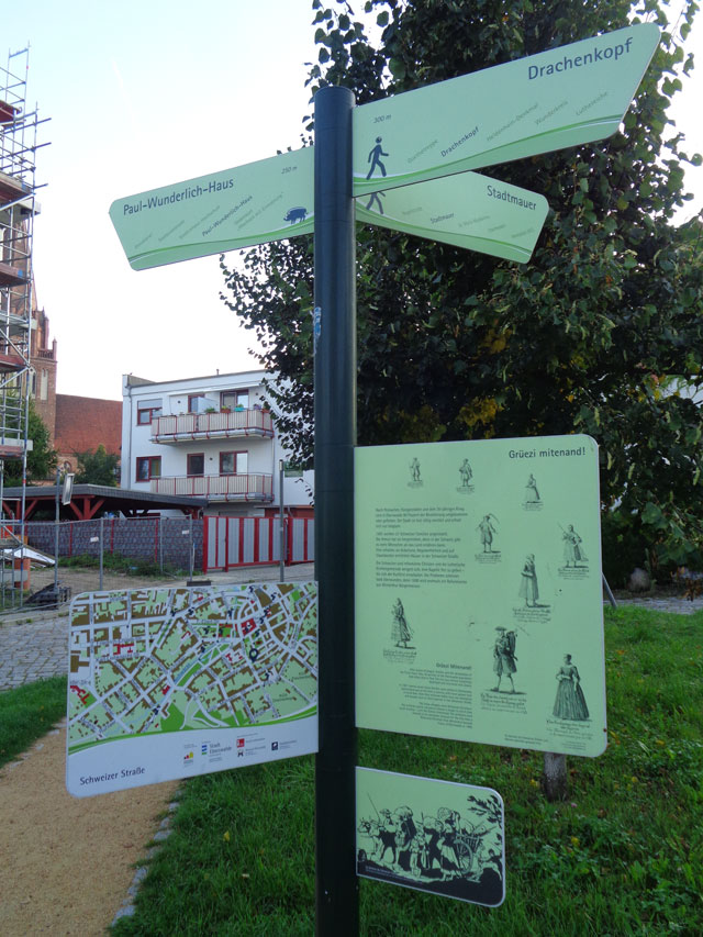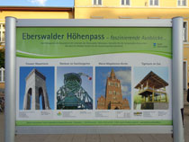 | Auf weitere Attraktionen der Stadt wird man auf dem Bahnhofsvorplatz hingewiesen. Das sind zum Beispiel vier ganz verschiedene Türme der Stadt, die man (theoretisch) besteigen kann: den Finower Wasserturm, den „Eberkran“ im Familiengarten, den Turm der Maria-Magdalena-Kirche im Stadtzentrum und den Aussichtsturm am Tigergehege des Zoos.