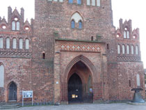 | Zum Markt geht es vorbei an der 1925 erbauten Grundschule „Am Pfefferberg“ (oben links) und an der katholischen Sankt-Marien-Kirche, die 1908/09 auf Veranlassung des Bernauer Pfarrers Ulitzka im französischen Barockstil errichtet wurde (oben rechts). Die Kirche hat einen achteckigen Grundriss, erscheint aber wegen der vielen Nischen und Vorstöße rund. Der große kunstvolle Hochaltar im Innern wurde übrigens seinerzeit von der Besitzerin des Schlosses Lanke gestiftet, die Orgel auf der Empore wurde bereits 1869 für die St.-Matthias-Kirche in Schöneberg gebaut und kam 1925 als Geschenk nach Biesenthal. |