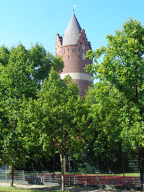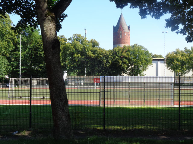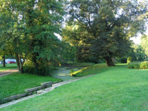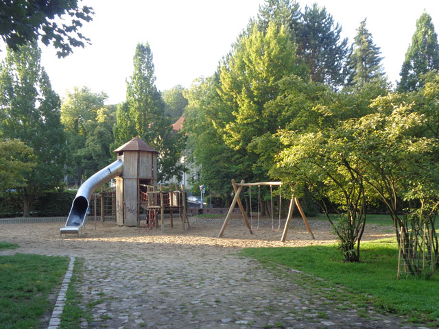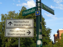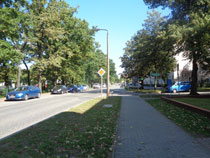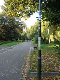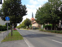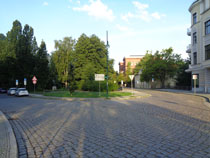 | Nahe dem Parkhaus zweigt die Schickler- von der Pfeilstraße ab und beide umschließen auf den nächsten 500 Metern den Park am Weidendamm, durch den auch die Schwärze fließt. | ![]() |