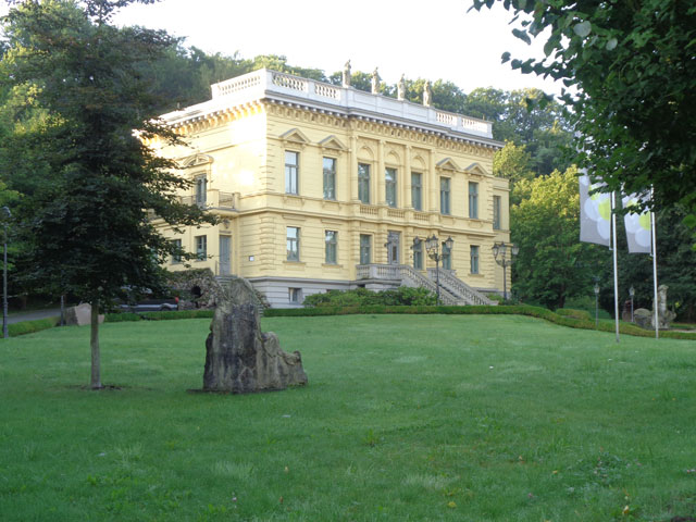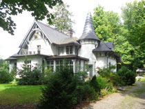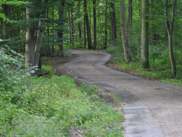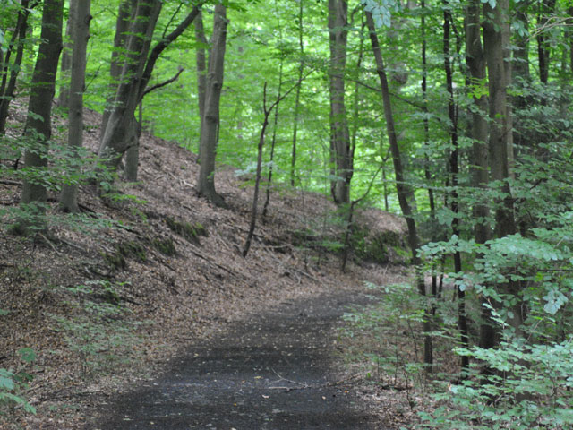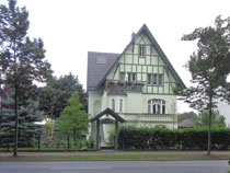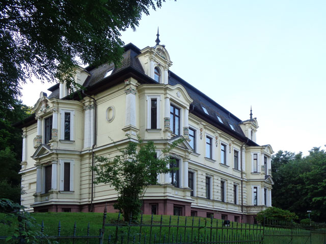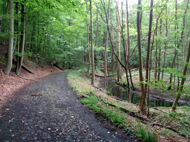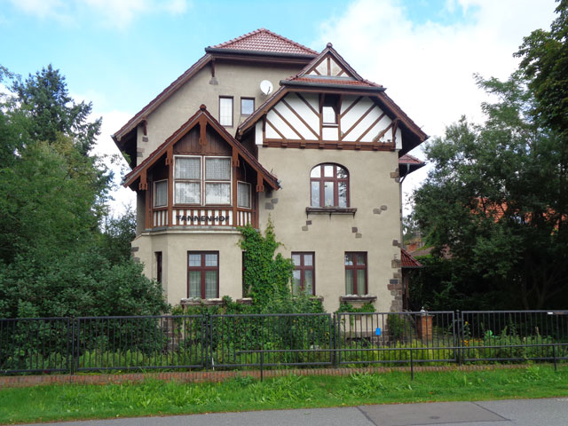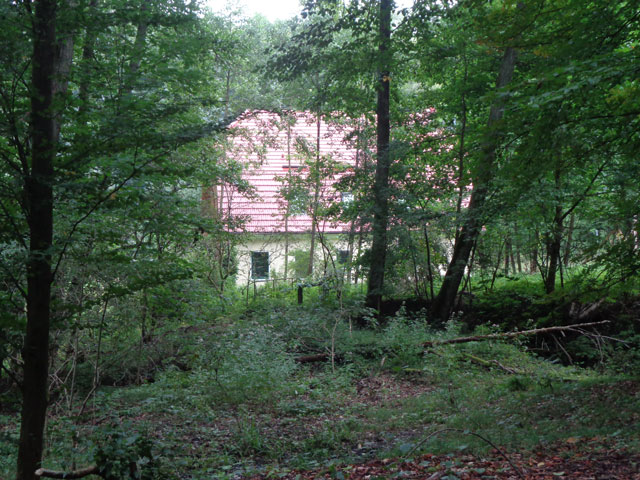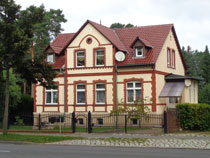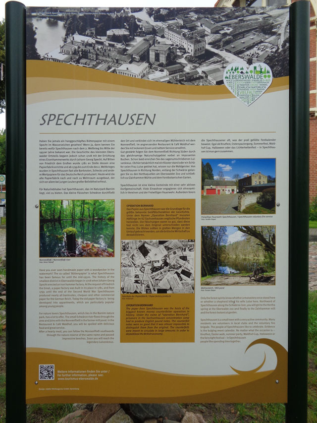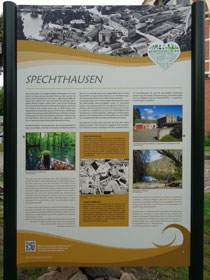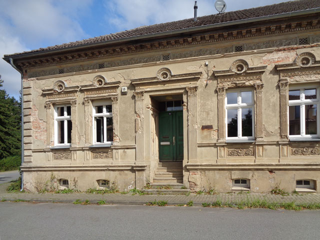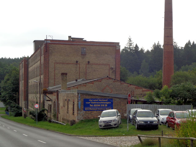 Der halb asphaltierte Weg schlängelt sich durch den dichten Buchenwald bis Spechthausen, wo gleich am Ortseingang eine früher sicher sehr respektable Fabrikanten-Villa grüßt. |