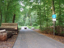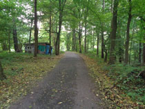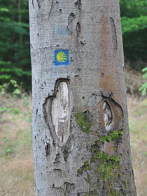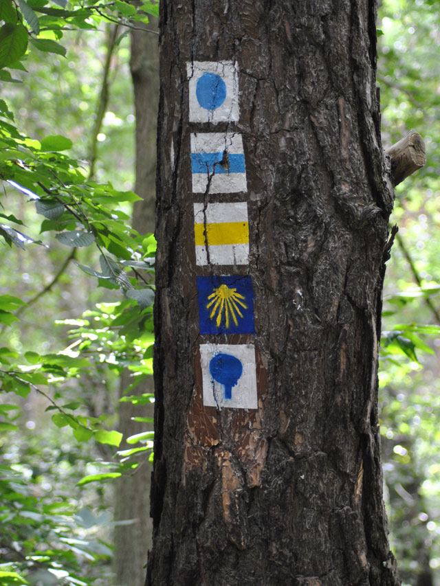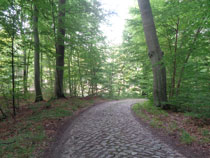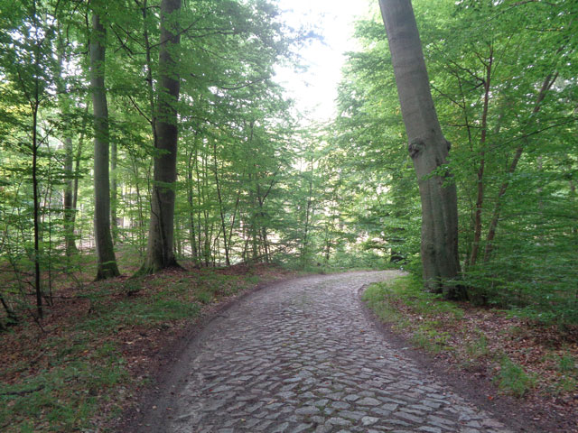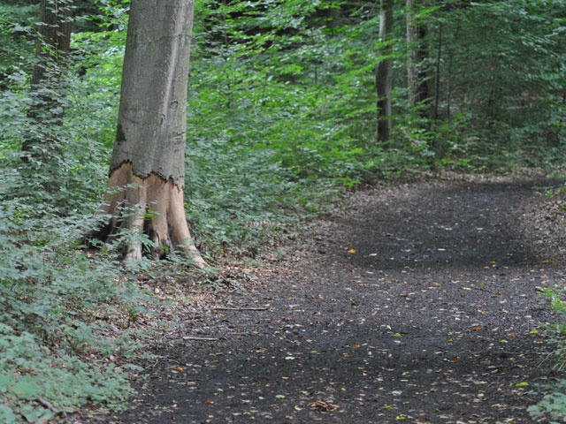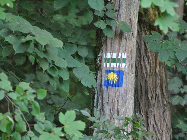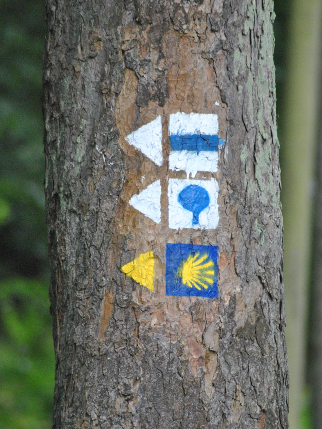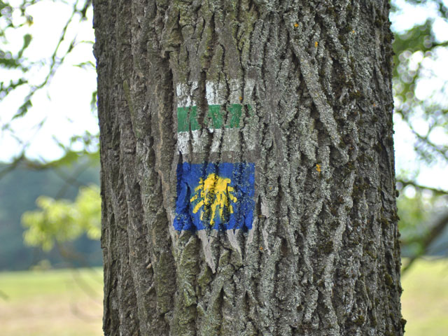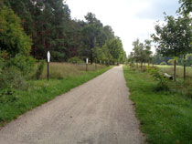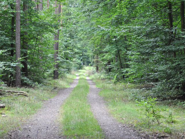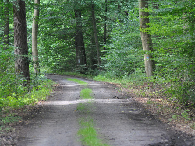 | Der Jakobsweg führt weiter geradeaus, jetzt entlang des Schwappachweges, der nach dem deutscher Forstwirtschaftler Adam Schwappach (1851–1932) benannt ist. Er war Professor an der Königlichen Forstakademie Eberswalde sowie Kommunalpolitiker der Stadt Eberswalde, die ihn 1928 zum Ehrenbürger ernannte.