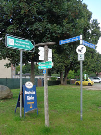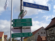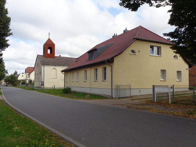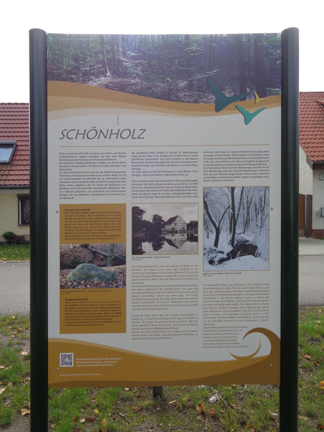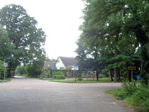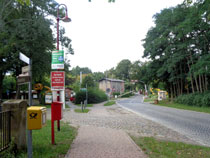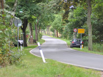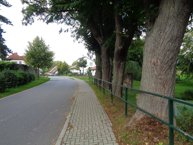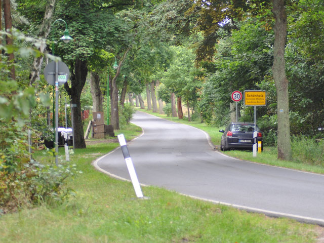| Am östlichen Ortseingang von Schönholz trifft der Weg auf eine von Norden kommende Kreisstraße, die sich durch das ganze Dorf zieht und am anderen Dorfeingang endet. | ![]() |