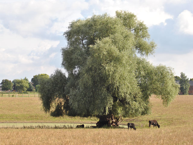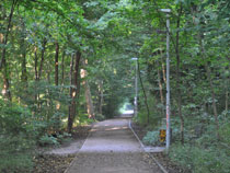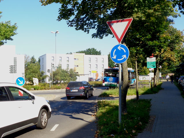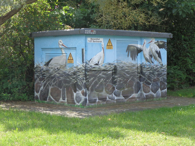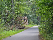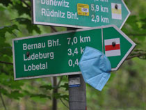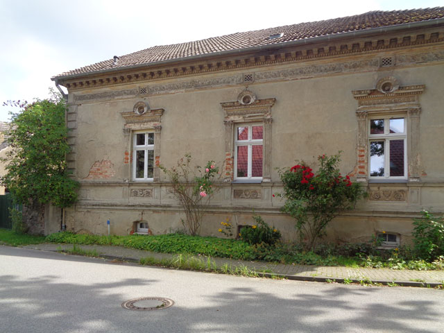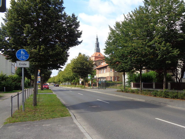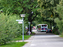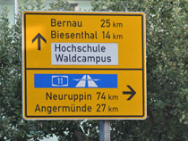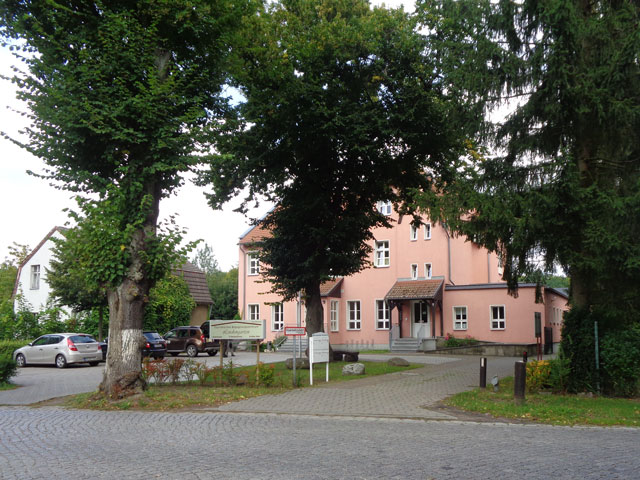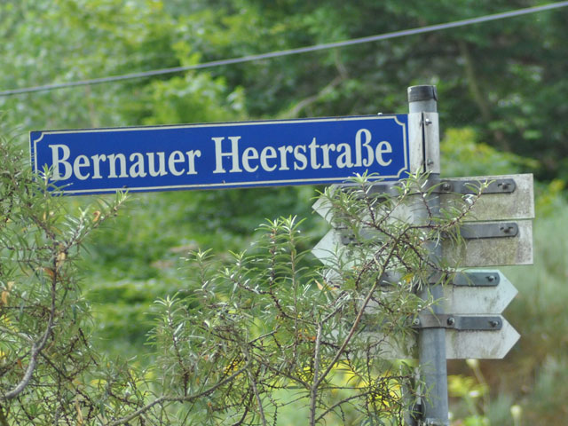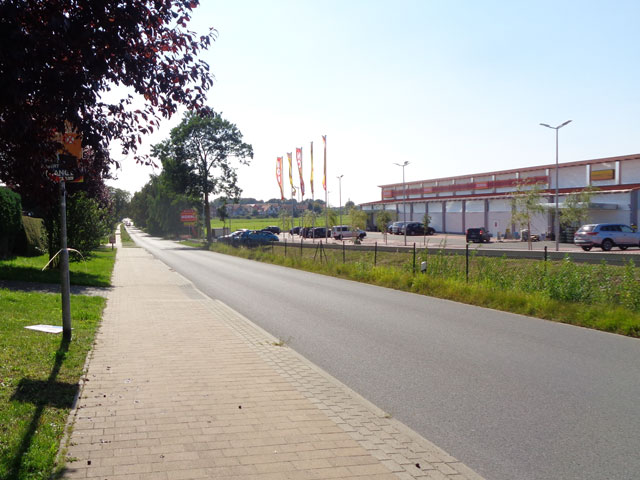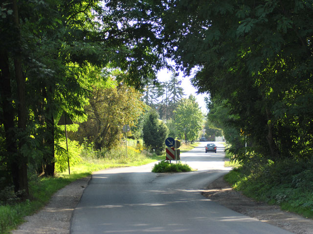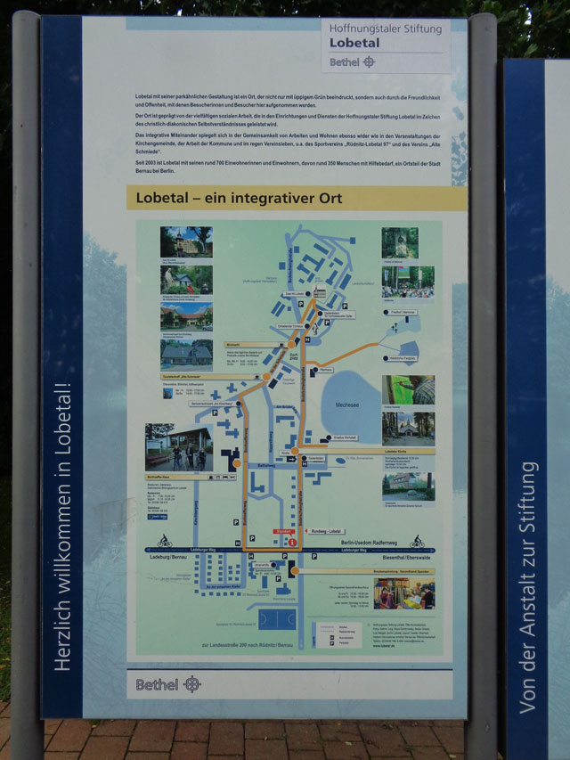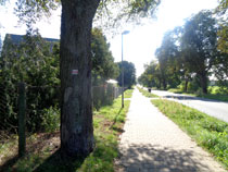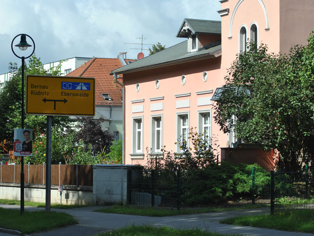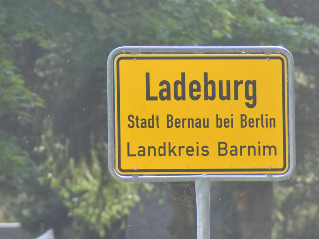 Die Straße zwischen Lobetal und Ladeburg hat leider keinen Fußweg, sie ist am Nachmittag ziemlich stark befahren und an die 30-kmh-Beschränkung hält sich kaum jemand. Aber bis Ladeburg ist es nicht weit und das Bankett ist wenigstens so breit, dass man bei entgegenkommenden Fahrzeugen leicht ausweichen kann. |