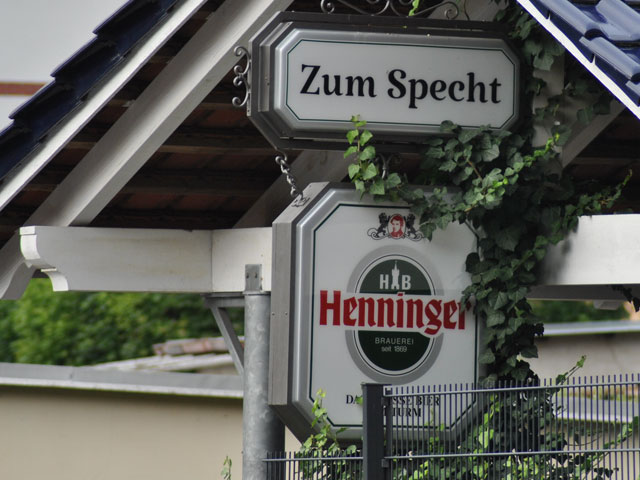 Der Betreiber der Gaststätte „Zum Specht“ lässt offen, ob damit der Vogel oder der Kupferschmiedemeister Specht gemeint ist.