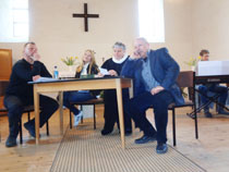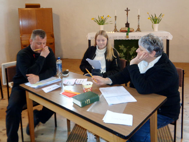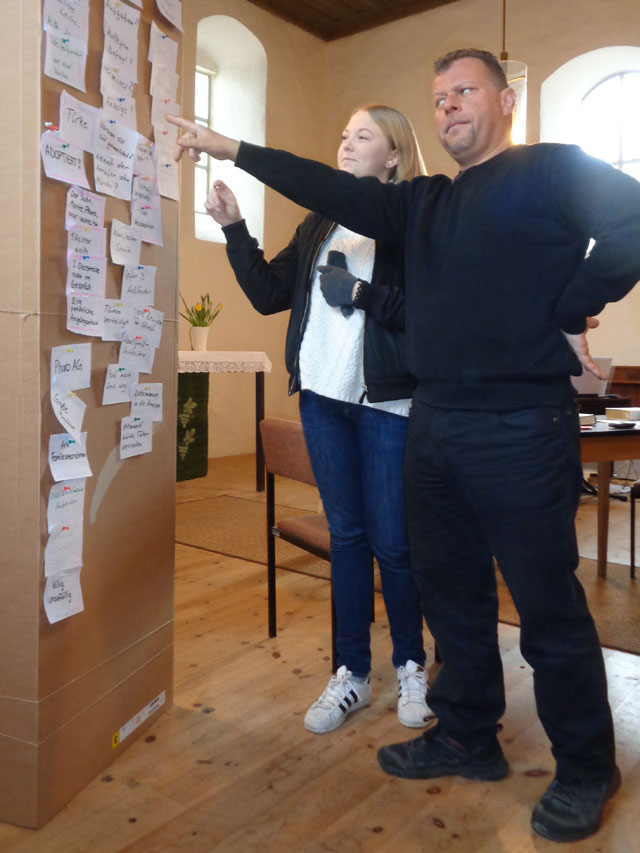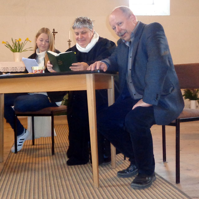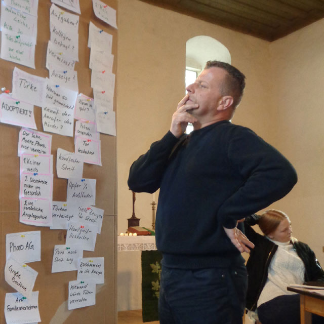 | Musikalisch untermalt wurde das Grübeln durch zünftige Krimi-Musik aus der Hand von Frau Preubsch, die statt der üblichen Choräle durch das ehrwürdige Kirchenschiff schallte.