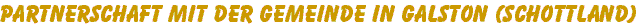Wie schon in der letzten Ausgabe des Gemeindebriefes berichtet, konnten wir im November auf 20 Jahre Partnerschaft zwischen der Ahrensfelder Kirchengemeinde und der Galson Parish Church zurückschauen. Anlässlich dieses Jubiläums gab es sowohl in Ahrensfelde wie auch im shottischen Galston eine Jubiläumsfeier. Delegationen beider Seiten nahmen an den Feierlichkeiten teil. ... Beiderseits wurde von den Gastgebern alles getan, um den Gästen zu zeigen, wie wichtig ihnen diese Partnerschaft ist. Besonders auffällig ist dabei in beiden Gemeinden, dass die Partnerschaft von der breiten Gemeinde getragen wird. Unzählige Gemeindemitglieder haben gekocht, gebacken, gespendet und sich engagiert, um das Jubiläum würdig zu behgehen. Auf beiden Seiten will man verstärkt die jungen Leute in die Partnerschaft einbeziehen. Hier gab es erste Überlegungen und Einladungen zu gegenseitigen Besuchen der Jugendlichen. J.-A. Zilch
