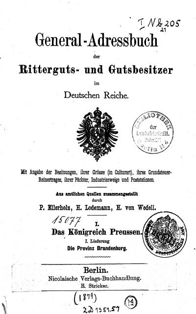 | Hellersdorf | 425,00 | 8961,00 | Graf von Arnim-Zychow (v. an Ober-Amtmann Buehr) |