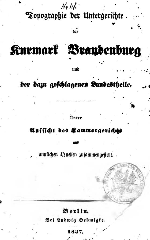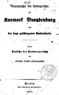 Seit dem Erscheinen der Lichtschen Gerichtsbarkeits-Topographie der Mittelmark, Priegnitz und Ukermark (!), Berlin 1803, bei Schöne, hat sich in der Begränzung des kammergerichtlichen Departements, und in dem Personale der Unterrichter desselben, so viel geändert, daß es dienlich erschienen ist, das werk von neuem zu redigiren.