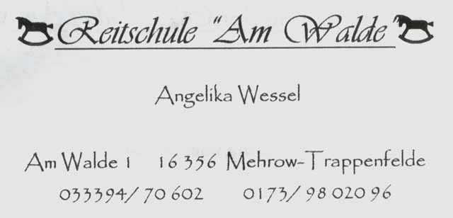 Die Leute in Trappenfelde ärgert es zu Recht, wenn sie "unter den Tisch gekehrt" werden und (wie hier auf dieser Webseite) immer nur von Mehrow die Rede ist und der Ortsteil Trappenfelde unterschlagen wird. Dabei gibt es viele, die kennen Mehrow nur deshalb, weil sie durch den Ort müssen, um nach Trappenfelde in die Reitschule zu kommen... Reiterhöfe gibt es ja einige in der näheren Umgebung, aber nicht jeder kann sich Reitschule nennen und erst recht nicht jeder kann mit solch gute Bedingungen für Pferde, Reiter und Gäste aufwarten. Und auch eine so charmante Chefin wie Angelika Wessel hat bestimmt nicht jeder Reiterhof. Bei ihr haben wollen wir uns heute mal umschauen. |