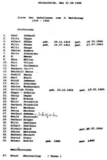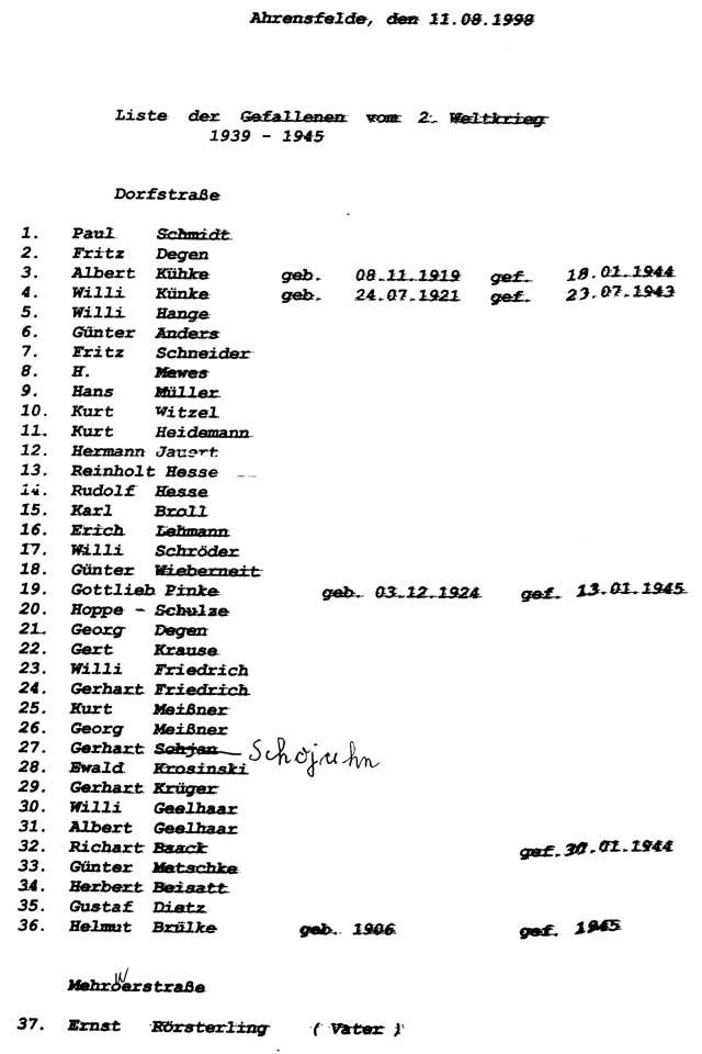 | 4. | Willi Künke (-> Willi Kühnke?) | geb. 24.07.1921 | gef. 23.07.1943 |