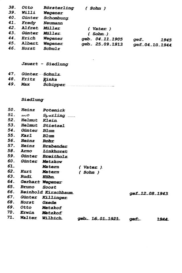 | 44. | Erich Wegener | geb. 04.11.1905 | gef. 1945 |