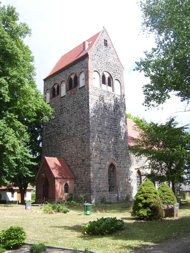 Die Dorfkirche Hönow stammt aus der Zeit von 1200-1250, sie ist ein einheitlicher romanischer Feldsteinbau mit gotischen Einbauten. |