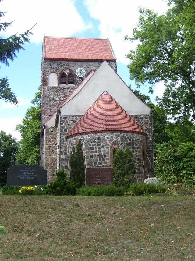 | Wer es etwas abenteuerlicher mag, kann aber auch den Weg durch die "Herrendike" wählen, den wir unlängst beschrieben haben, und dabei Ausschau nach dem "Franzosenfriedhof" aus napoleonscher Zeit halten. Aber egal welchen Weg man nimmt: richtig angekommen ist man erst, wenn man vor der alten Hönower Dorfkirche steht. |