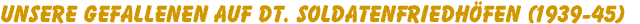 | Nachfolgend finden Sie eine Liste der bereits besuchten Soldatenfriedhöfe und Kriegsgräberstätten, auf denen nach unseren Recherchen Gefallene des Zweiten Weltkrieges aus den Ahrensfelder Ortsteilen (Ahrensfelde, Blumberg, Eiche, Lindenberg, Mehrow) bzw. Hönow ruhen. |