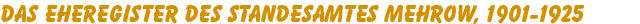 Im Eheregister des Standesamtes Mehrow vermerkte Eheschließungen (1901-1925): |