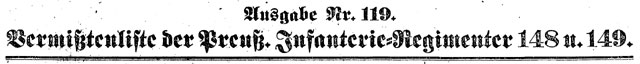 Achtung! Die nachfolgend den Vermissten-Daten hinterlegten Links führen auf eine Web-Seite des Vereins für Computergenealogie e.V., die sowohl den jeweiligen Ausschnitt der eingescannten Vermisstenliste, als auch die die im Rahmen eines Projektes ausgelesenen und abgespeicherten Daten des Vermissten enthält. Jene Seite unterliegt nicht unserer redaktionellen Verantwortung. Die dort weiter führenden Links konnten von uns nicht umfassend gesichtet werden, weshalb wir uns vorsorglich von deren Inhalt distanzieren.