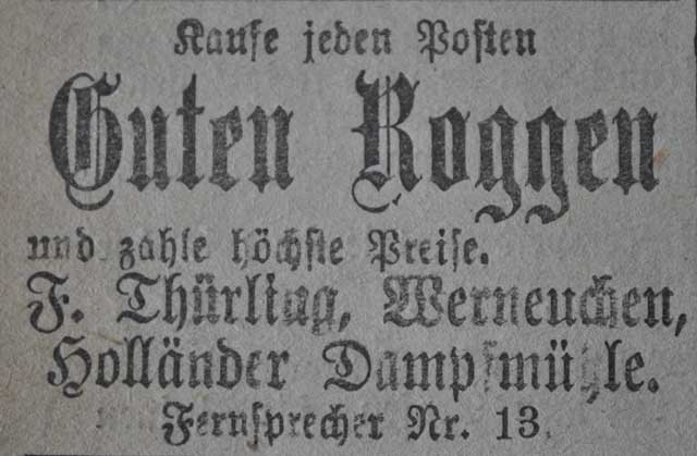 Gestern wurden durch Gendarmeriewachtmeister Zühlke bei Ahrensfelde zwei galizische Arbeiter festgenommen und in das hiesige Amtsgerichtsgefängnis eingeliefert, die ohne Papiere und Geld waren. Es sind die Arbeiter Raglitzki und Bielack, 22 und 24 Jahre alt. Es dürfte nicht von der Hand zu weisen sein, daß sie vielleicht von dem mitgeteilten Ueberfall auf den Lehrling Zieme etwas wissen. Werneuchen. In der Nacht vom Freitag zum Sonnabend wurde hier beim Schlossermeister Nirthe eingebrochen. Die Diebe entwendeten zwei gute Fahrräder und einen Handwerksbaukasten. Auf telefonische Benachrichtigung wurden die Diebe bei Ahrensfelde festgenommen und alles sonstige abgenommen. Werneuchen. Am Sonnabend abend brach ein Dachstuhlbrand in dem Gasthof zur Grünen Linde aus, der jedoch bald gelöscht wurde. |