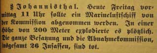 Johannisthal. Auf dem Flugplatz stieß Dienstag Nachmittag eine Albatros-Taube, die von Leutnant Freund gesteuert wurde, mit einer Rumpler-Taube zusammen, in der die Flieger Linnekogel und Golde saßen. Die drei Insassen wurden schwer verletzt, die Flugzeuge völlig zertrümmert. |