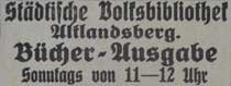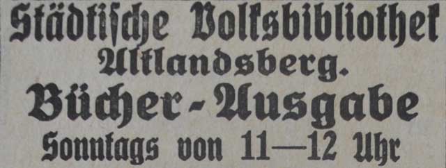 Niederbarnimer Anzeiger (Ostbahnzeitung) Amtliches Publikationsorgan für den Amtsgerichtsbezirk Altlandsberg, die Stadt Altlandsberg, den Amts- und Gemeindebezirk Neuenhagen, die Gemeinden Fredersdorf, Petershagen, Bruchmühle und viele Nachbarbezirke Öffentlicher Anzeiger für Altlandsberg, Werneuchen, Neuenhagen, Hönow, Seeberg, Herzfelde, Dahlwitz, Hoppegarten, Fredersdorf, Petershagen, Eggersdorf, Werder, Rehfelde, Wegendorf, Weesow, Wesendahl, Blumberg, Seefeld, Löhme, Krummensee, u. a. O. Redaktion, Druck und Verlag von Georg Hiller in Altlandsberg, Berliner Allee 10 B. |