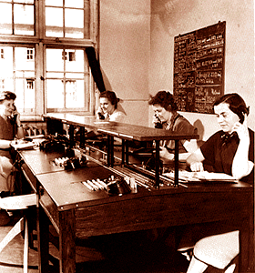 Fernsprechvermittlung des Rathauses Berlin-Schöneberg im Jahre 1952. |