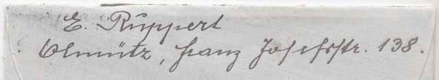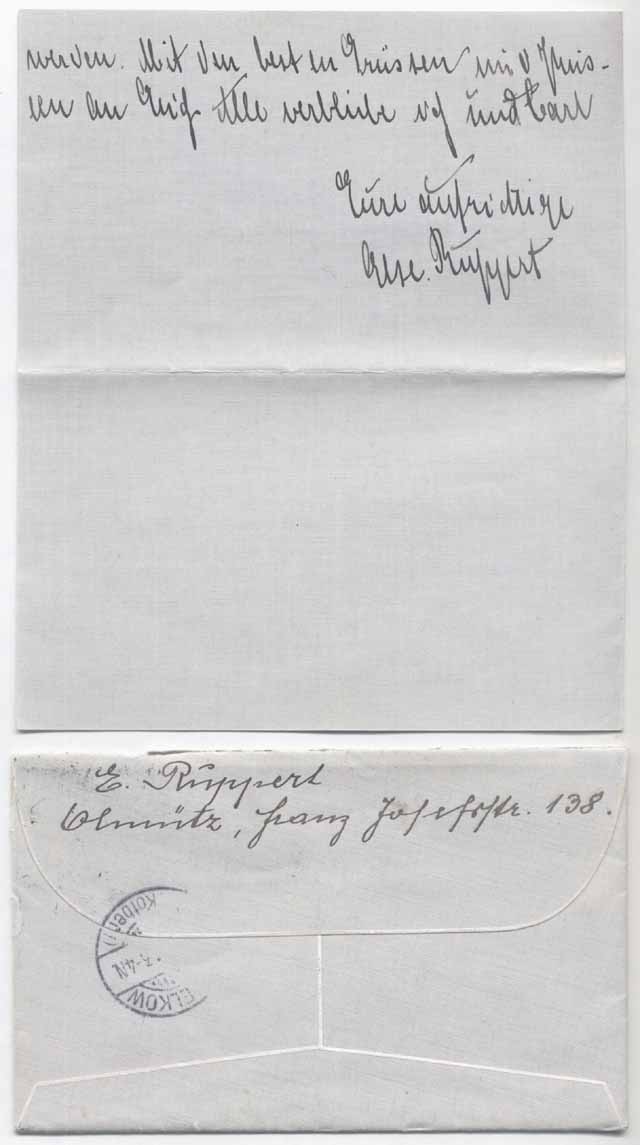 Der Brief stammt von einer Else Ruppert, wohnhaft in Olmütz, Franz Josefsstraße 138, und ist adressiert an