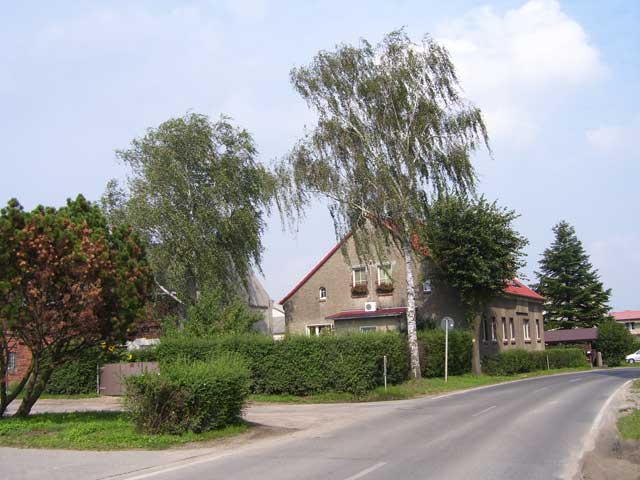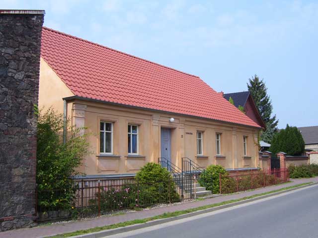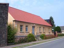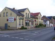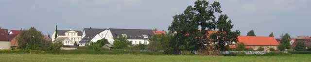 Auf der linken Seite sehen wir als erstes das gerade frisch gepinselte Hauptquartier der Firma "Rahlf", daneben das Wohngebäude des "Meißnerschen Hofes", eines der ehemals vier Gehöfte in Mehrow. |
