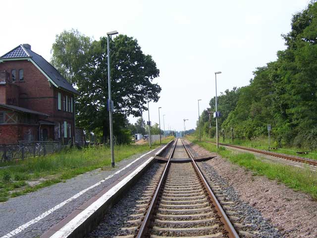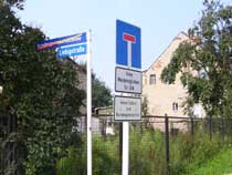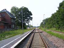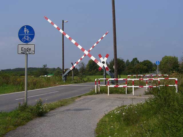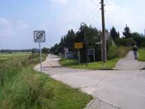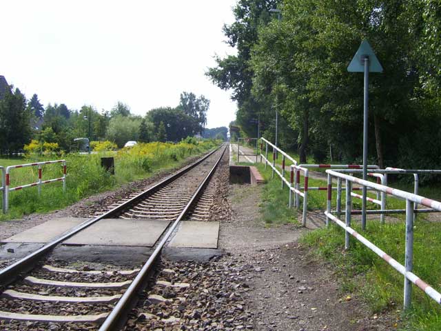 | Am BGS-Zaun angekommen gabelt sich der Weg. Für Wanderer empfiehlt es sich, nach links zu gehen und dann, immer dem Zaun folgend, nach rechts abzubiegen. Radfahrer sollten bereits hier nach rechts abbiegen und um das BGS-Geländer herum bis zur Zufahrtsstraße des Geländes fahren, die mit einem fantastischen Radweg versehen, nach Ahrensfelde führt. An der Bahnschranke in Ahrensfelde trifft man dann wieder auf den beschriebenen Wanderweg. |
